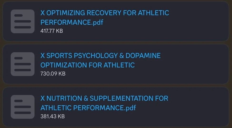 Monthly guidance in nutrition & supplementation, recovery optimization, and sports psychology—plus three science-backed cheat sheets that include actionable tools to get you started.