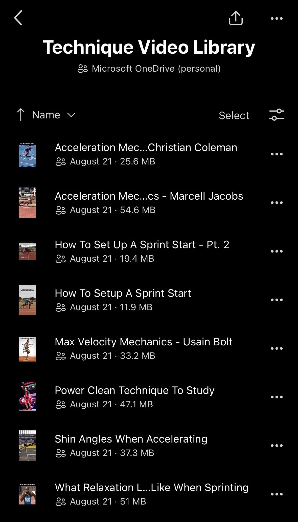 Access to a private technique video library with breakdowns of proper sprint mechanics and weight room technique.